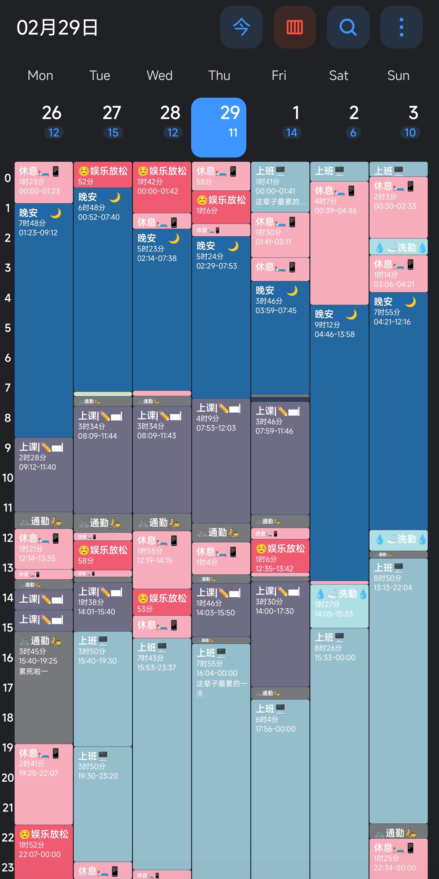 准备学习前以及准备起床前,准备入睡前,打胶后进行活动,还有不知道干啥时也占很多。