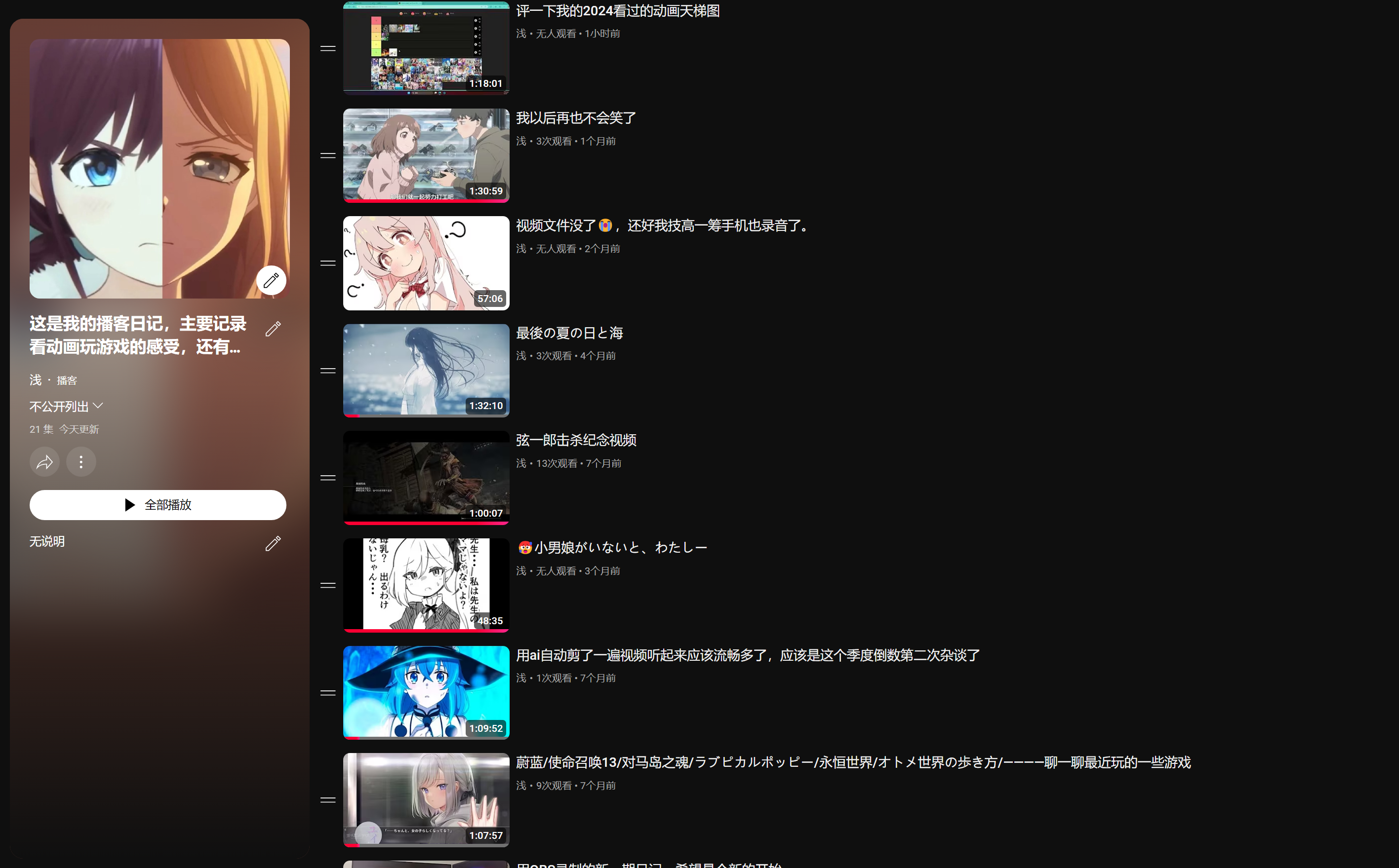 研究如何更舒服的看动画,研究关于自己的数据记录,研究如何白嫖各种软硬件服务,偷各种公开github项目来玩,收集各种api与网站与app,录制自己的ACG播客日记等。今年折腾出的结果有: